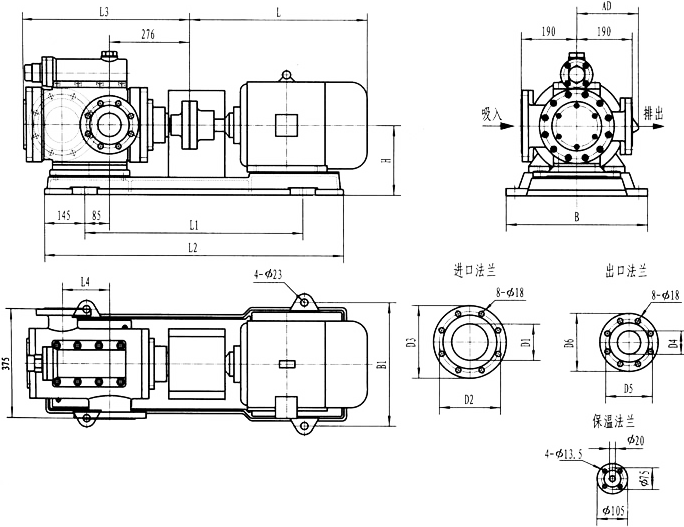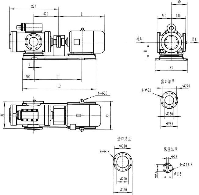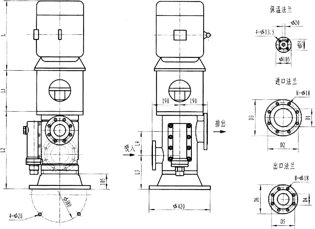 3GBW35,3GF35型法蘭式泵外形及安裝尺寸