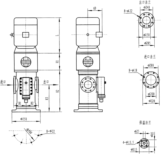3GLBW180(200),3GL180(200)型立式泵外形及安裝尺寸